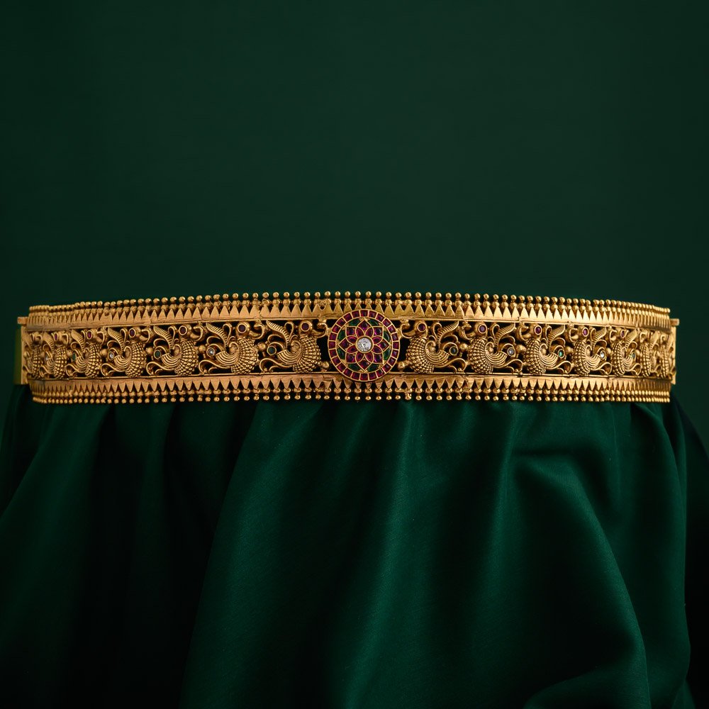 antique gold finished 3d peacock designed floral kempu stone worked real gold inspired hipbelt