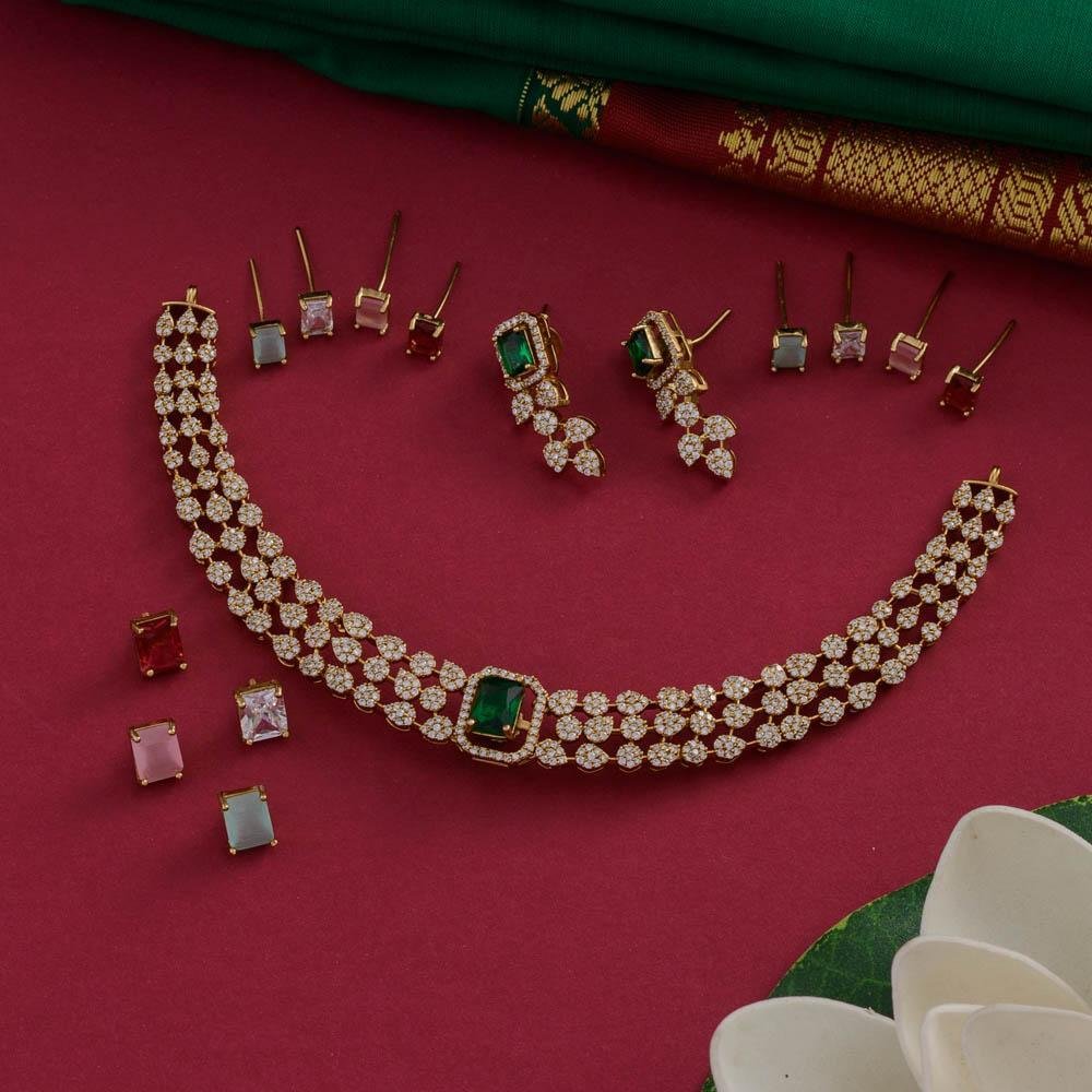 american diamond heavy stone worked 1 base and 5 different changeables neckpiece set