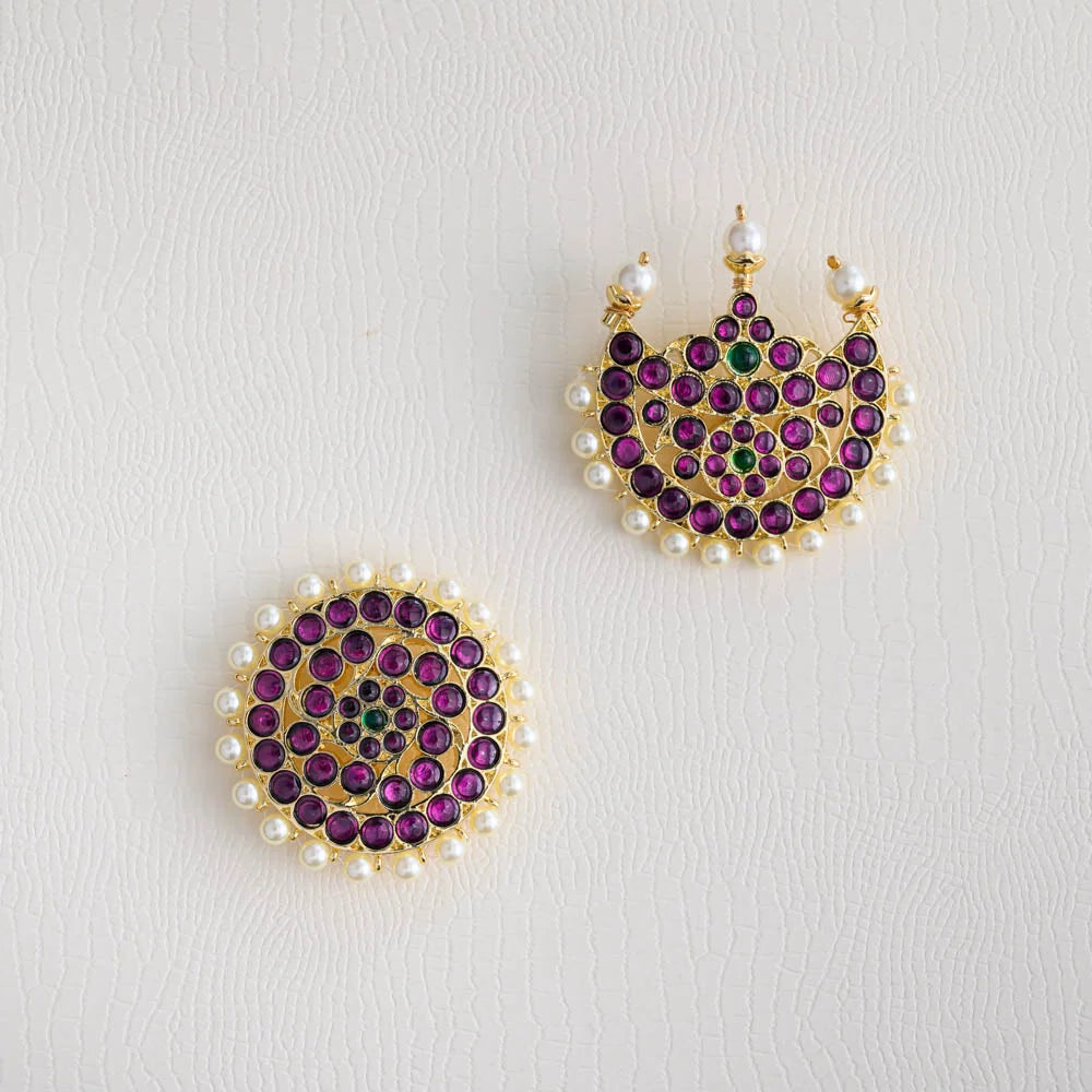 Antique gold finished exquisite kempu stone worked , surya – chandra pirai