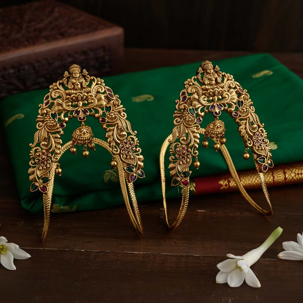 Antique gold finished temple designer goddess Lakshmi ,peacock and floral designed real gold replica adult size adjustable vanki