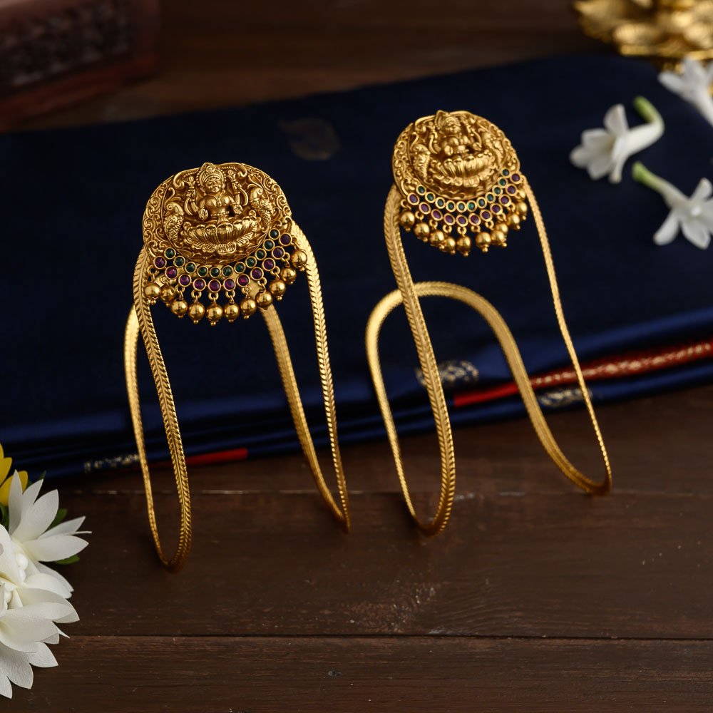 Antique gold finished goddess Lakshmi ,peacock kempu stone worked real gold inspired adjustable adult vanki