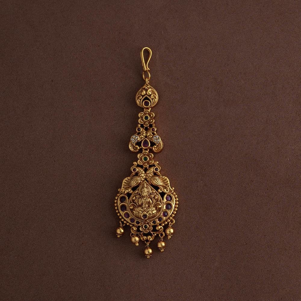 antique gold finished goddess lakshmi and peacock designed nagas worked tikka
