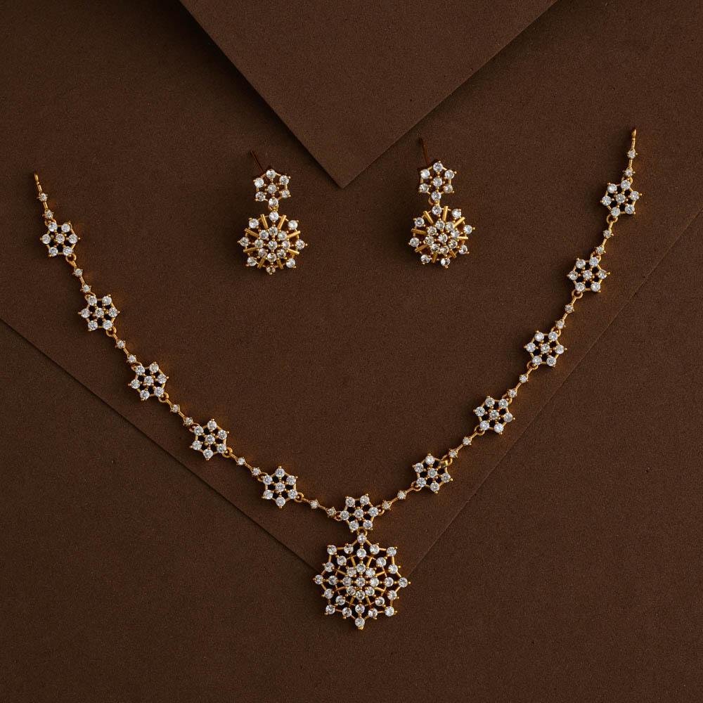 antique gold finished american diamond stone worked floral pattern real diamond replica neckchain set