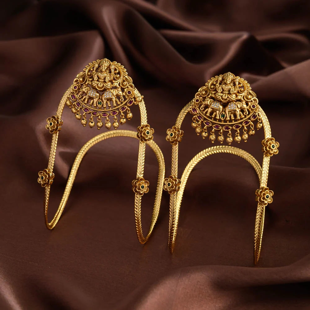 Antique gold finished temple designer goddess Lakshmi designed 3d worked vanki [ pair ]