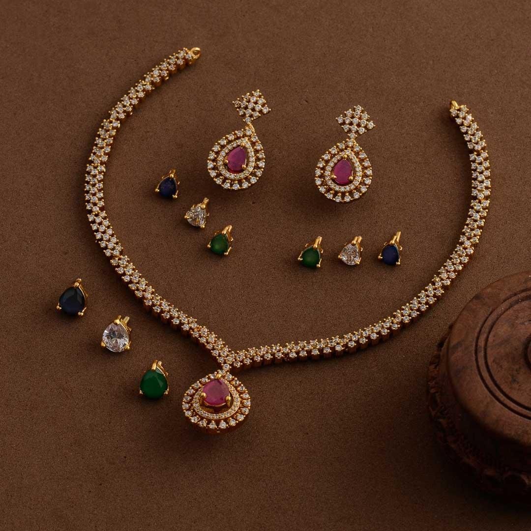 American diamond stoned heavy worked interchangeable Neckpiece set with 1 base and 4 changeables.