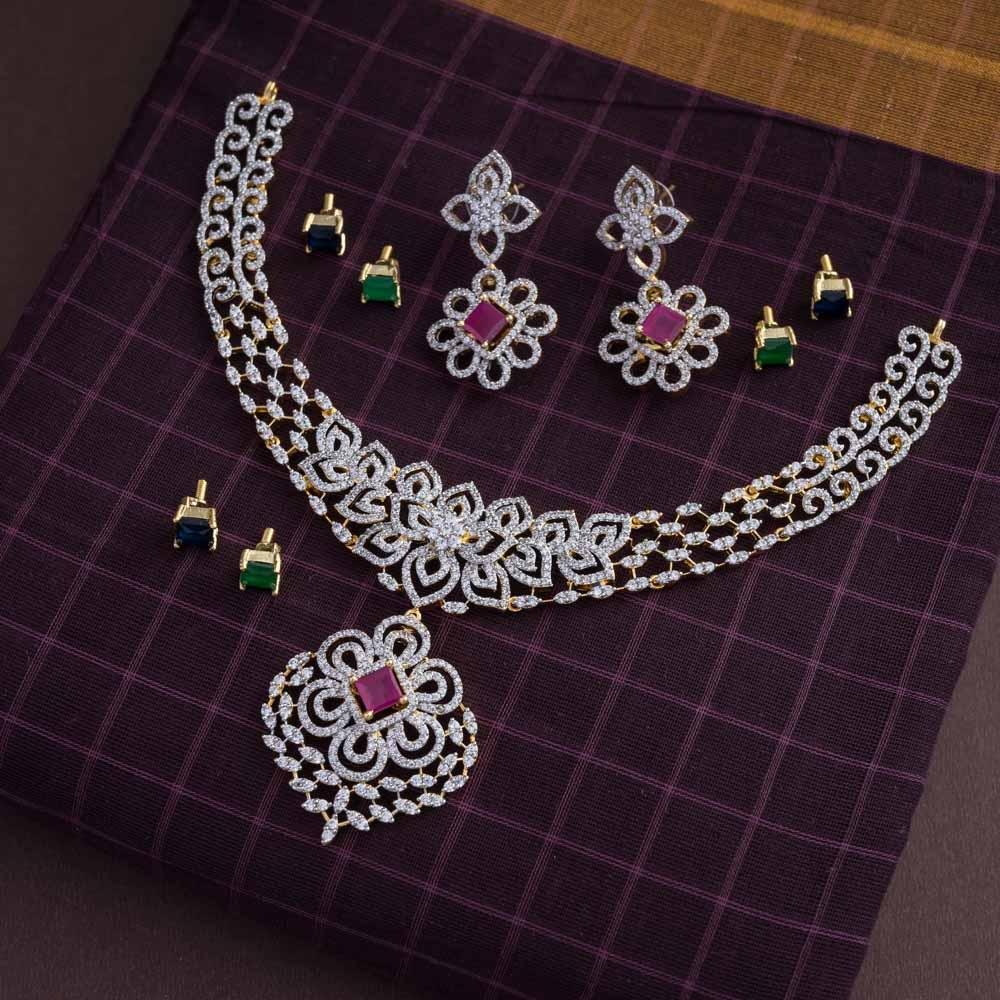gold finished american diamond exquisite stone worked one base and four different color changeables neck piece set